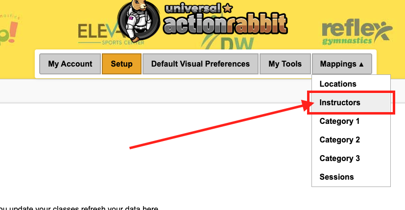 To Map your Instructors select “instructors” from the Mappings drop down.