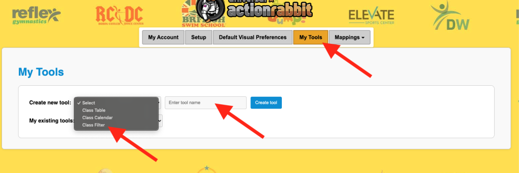 To Create a New Class Calendar Navigate to “My Tools”. Then select “Class Filter” from the Drop Down. Then Name it and click “Create Tool”