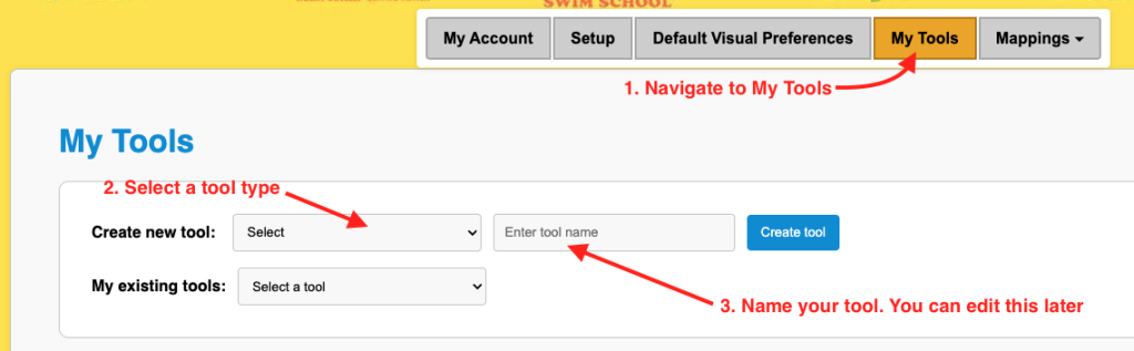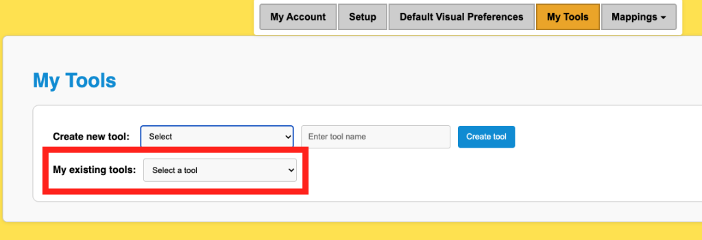 - Select the tool you want to update in the drop down labeled “my existing tools”